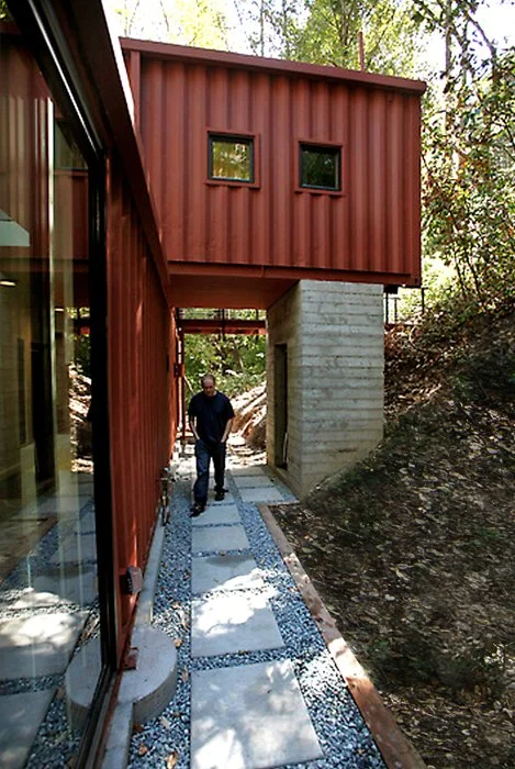 An amazing family with a desire to create unique simplicity in the middle of the Santa Cruz redwoods led to shipping containers, a perforated bridge, crafted foundations, and poetic lighting - all while keeping a soft footprint within a sturdy shell.