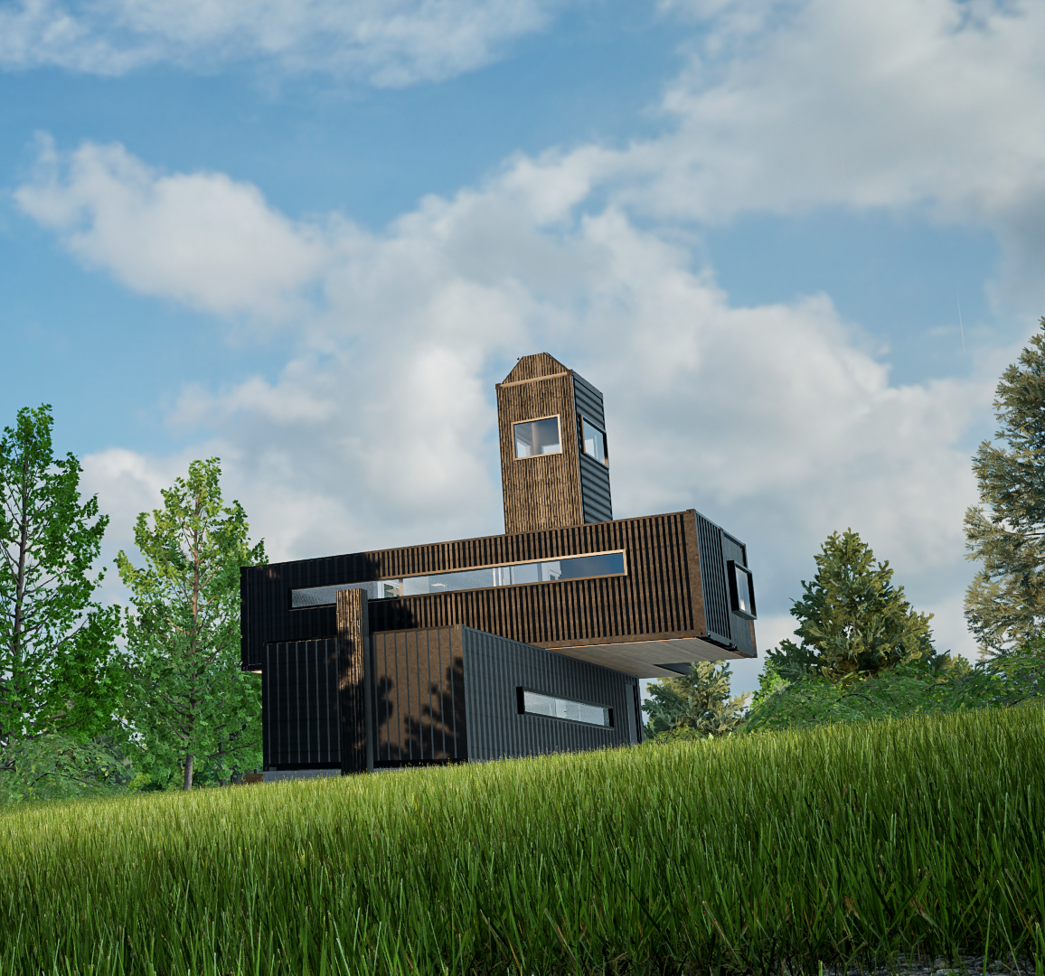 Situated within the lush woodlands of Upstate New York, this bespoke dwelling, crafted from five repurposed shipping containers, seamlessly marries Nordic charm with modern flair, capturing the essence of its diverse surroundings.